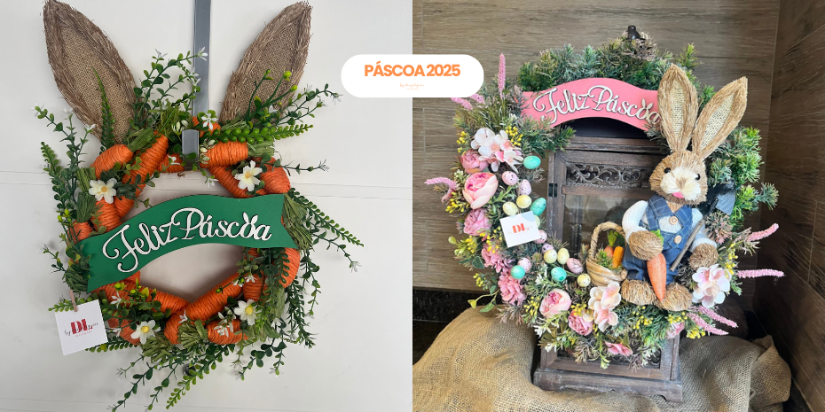 Nossas guirlandas são muito mais do que elementos decorativos. Elas são verdadeiras obras de arte, criadas para receber seus convidados com a alegria e o espírito de renovação que a Páscoa representa.