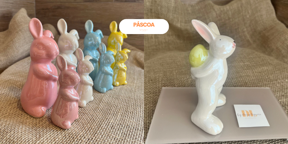 Eles são ideais para enfeitar sua casa ou presentear com charme e ternura. O coelho é o símbolo máximo da Páscoa, e nossas peças prometem encantar desde as crianças até os mais nostálgicos adultos.