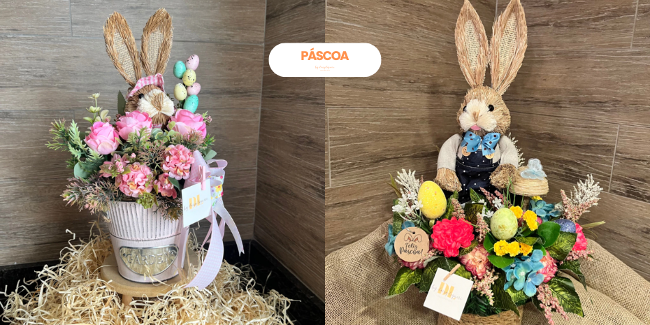 Cada peça traz combinações exclusivas de cores e texturas, incorporando elementos naturais e festivos. Os arranjos não são apenas lindos; são uma celebração da vida, perfeitos para transformar sua decoração de maneira elegante e especial nessa Páscoa.